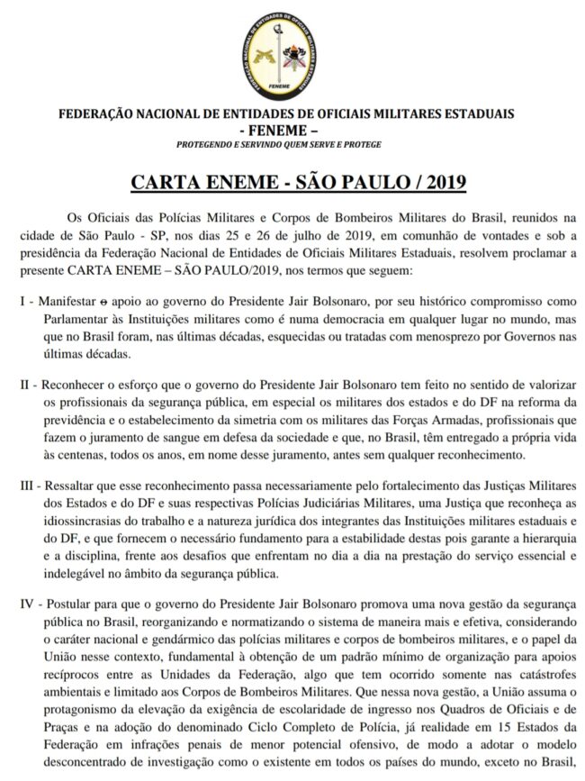 CARTA ENEME SÃO PAULO/2019 para conhecimento e difusão.