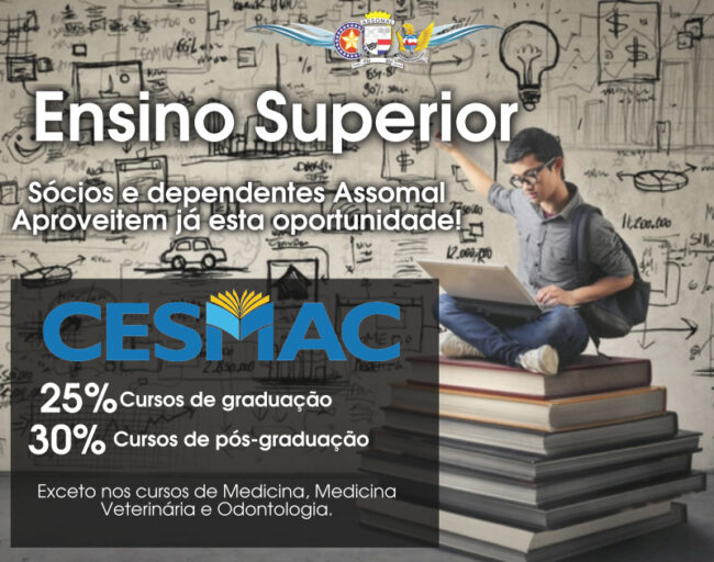 Mais uma parceria de sucesso está à disposição dos associados da Assomal! No Centro de Ensino Superior de Maceió (CESMAC), sócios titulares e seus dependentes, tem desconto garantido de 25% nos cursos de graduação – exceto nos cursos de Medicina, Medicina Veterinária e Odontologia, e 30% nos de pós-graduação. Porém, o desconto é condicionado ao…
