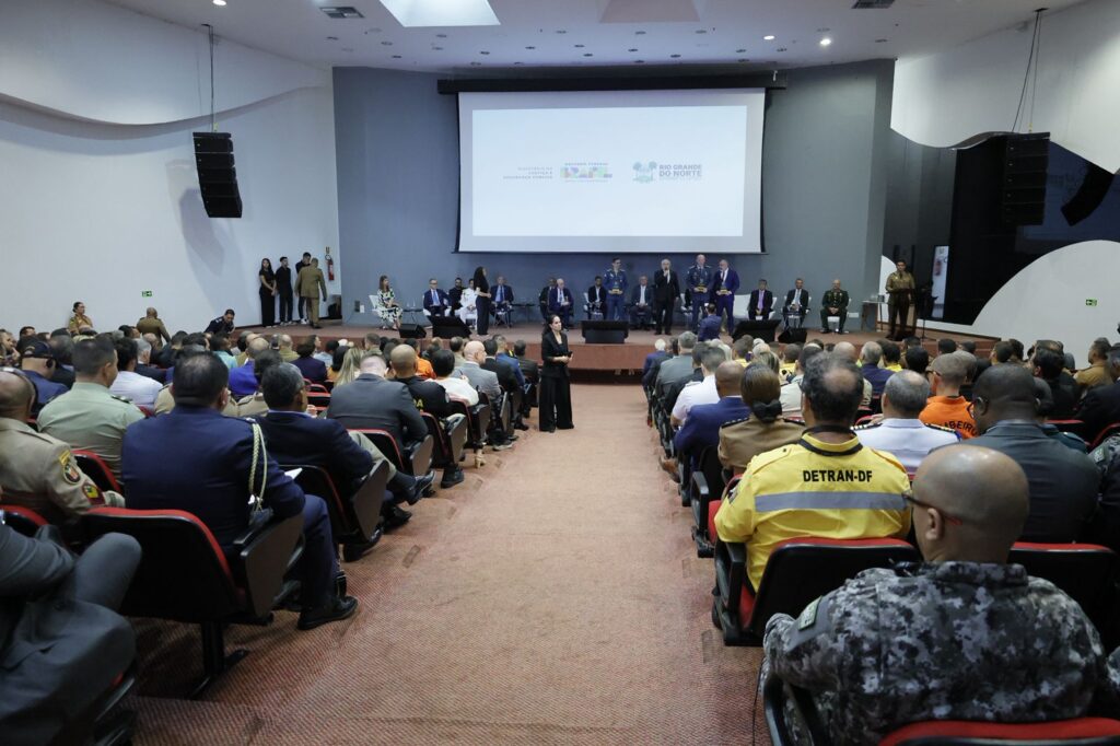 O primeiro dia do seminário foi marcado pela Palestra Magna, com o tema “Saúde e prevenção ao suicídio dos profissionais de Segurança Pública e Defesa”, um dos assuntos mais sensíveis e urgentes da área. A atividade teve como palestrante internacional o Sr. David B. Rausch, presidente da Associação Internacional de Chefes de Polícia (IACP), que apresentou experiências e estratégias adotadas internacionalmente para o cuidado com a saúde mental dos profissionais.
