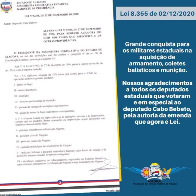 A Associação dos Oficiais Militares de Alagoas – Assomal cumprimenta o novo titular da Secretaria de Estado da Segurança Pública, Alfredo Gaspar de Mendonça, pela assunção ao cargo. Renova também a esperança de manter com o Secretário Alfredo Gaspar um diálogo franco e contínuo que garanta e, sobretudo, promova ações concretas de valorização profissional aos…