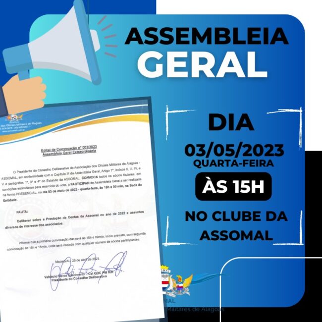 O presidente da Assomal, Coronel PM Olegário Paes, é o novo diretor da Regional Nordeste da Federação Nacional das Entidades de Militares Estaduais. A nomeação foi assinada na Assembleia Geral da Feneme, realizado nesta quarta-feira (14), em Brasília, com apoio unânime das entidades participantes. Como vice-diretor do Nordeste foi empossado o Ten Cel PM Diego…