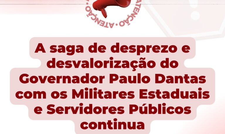 O Movimento Unificado dos Servidores Públicos Civis e Militares Estaduais esclarece aos associados e sociedade em geral, que o governador Paulo Dantas, mais uma vez, gera expectativa nos trabalhadores e insiste em postergar o fim do processo de negociação, que já dura por meses. Em vídeo divulgado em suas redes sociais, na última quarta-feira (14),…