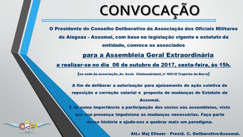 Diretor Regional Nordeste da FENEME, presidente da Assomal participa de IV Encontro dos oficias militares em Fortaleza O presidente da ASSOMAL, Cel Olegário Paes, participou nesta quinta (07) do IV Encontro das Entidades de Oficiais das Polícias e Bombeiros Militares do Nordeste, em Fortaleza-CE. Na ocasião, representa a categoria militar estadual como Diretor Regional Nordeste…