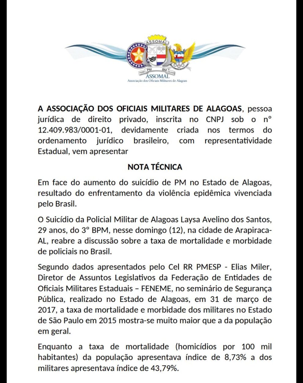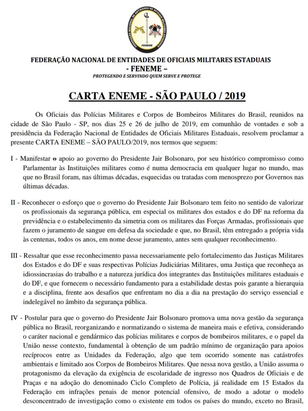 As Entidades Nacionais e suas associadas em todo o Brasil, que juntas representam mais de meio milhão de profissionais de segurança pública, abaixo-assinadas, vêm a público, MANIFESTAR APOIO E SOLIDARIEDADE.