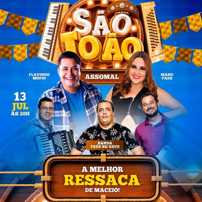 A Assomal promove, no próximo sábado (13), a partir das 20h, mais uma edição de sua tradicional Ressaca de São João. Depois das escalas juninas, o extra do associado será com a família, curtindo o Forrozão no Clube da Assomal, ao som de Três no Xote, Manu Paes e Flavinho do Môfio. Na praça de…