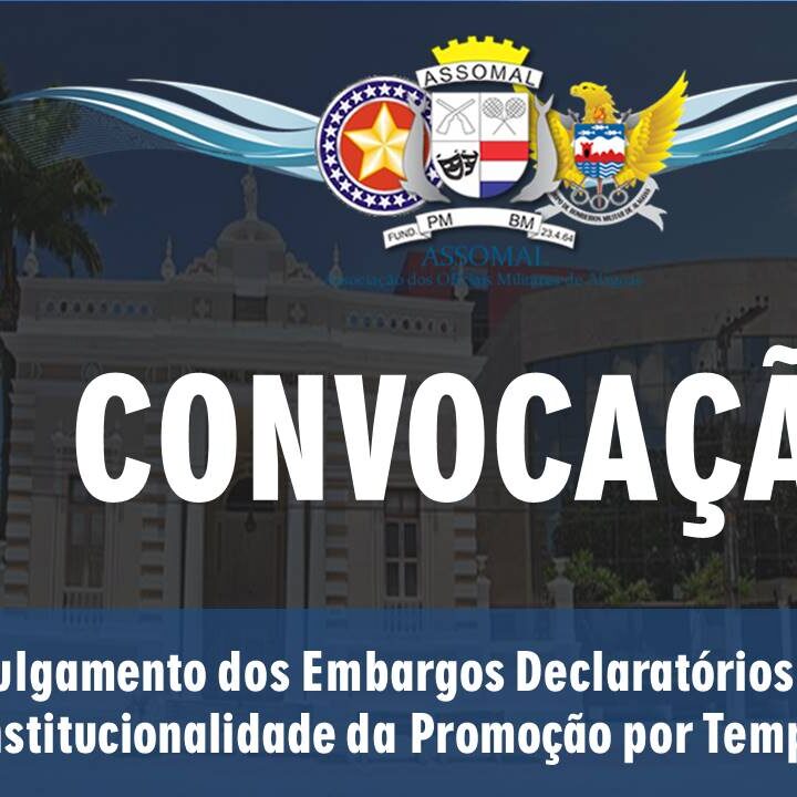 Associação dos Oficiais Militares de Alagoas convoca toda a tropa para se fazer presente na próxima terça-feira (6) às 09h, no plano do TJAL, a fim de acompanhar o julgamento dos embargos declaratórios impetrado pelo ministério público e chancelado pelo governador Renan Filho à decisão do pleno do TJAL que declarou constitucional a promoção por tempo de serviço – PTS do militar estadual.