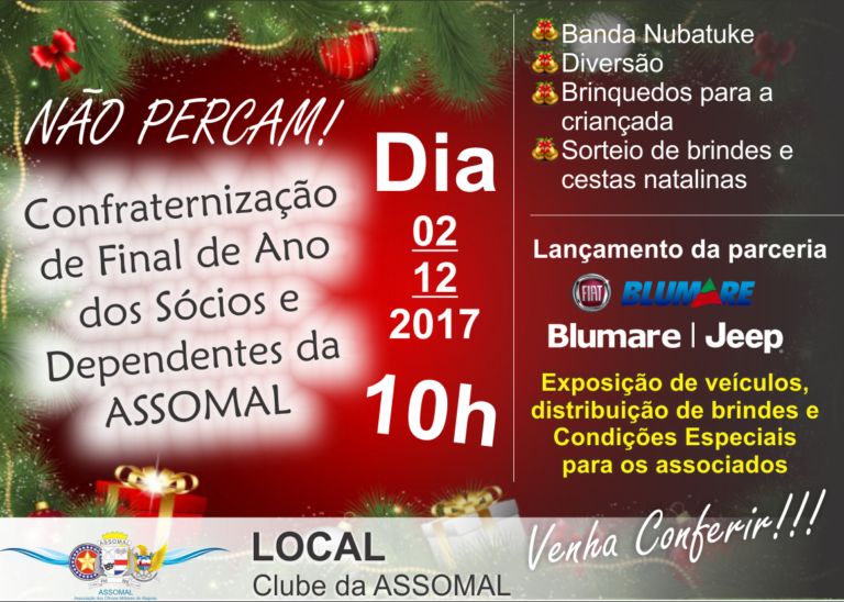 Associado, as festas foram um sucesso! O Bailinho Infantil e o Bloco da Assomal foram um sucesso.Muita animação, fantasias, frevo e folia.Na sede da entidade o Bailinho Kids Assomal embalou a criançada com o Palhaço Hukinho e Banda Lupi. No Jaraguá o bloco da Assomal foi embalado pela Banda de Frevo de Marechal Deodoro Sociedade…