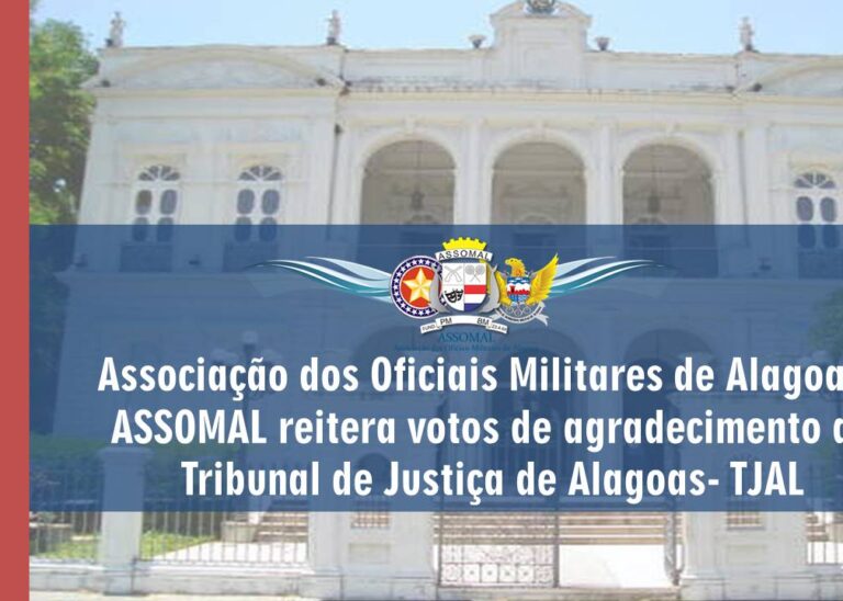 A Associação dos Oficiais Militares de Alagoas – ASSOMAL, entidade representativa do Oficialato da Polícia Militar de Alagoas – PMAL e do Corpo de Bombeiros Militar de Alagoas – CBMAL, externa publicamente seu apoio e agradecimento ao Ministério Público de Alagoas – MP/AL, pela atuação das Promotoras de Justiça Karla Padilha e Stela Valéria, pela…