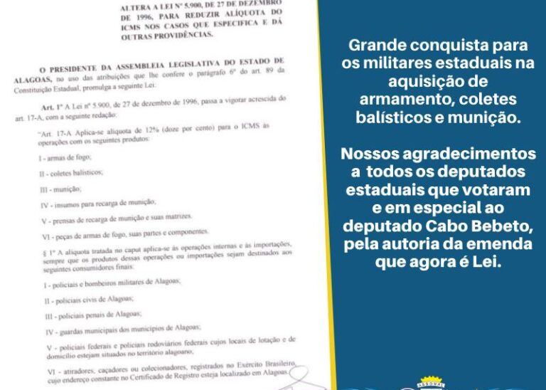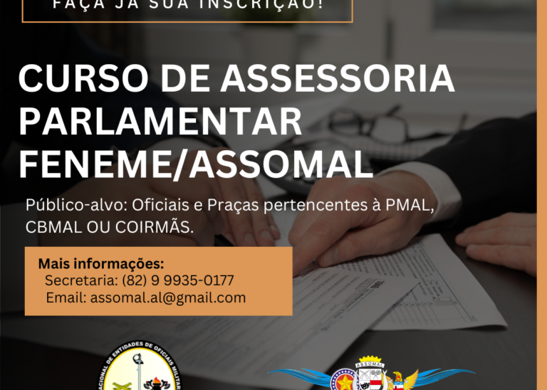A Associação dos Oficiais Militares de Alagoas – ASSOMAL, entidade representativa do Oficialato da Polícia Militar de Alagoas ( PMAL ) e do Corpo de Bombeiros Militar de Alagoas (CBMAL), vem a público repudiar a conduta do governador Paulo Dantas que mais uma vez prova que seu coração trabalhador não valoriza os Militares Estaduais. Ele…