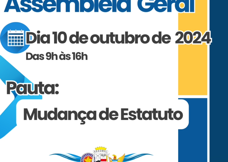 A Associação dos Oficiais Militares de Alagoas – ASSOMAL vai realizar na próxima quinta-feira, dia 10, das 9h às 16h, a Assembleia Geral para Reforma Estatutária da Entidade. Na forma presencial e estendida, o sócio titular adimplente vai conferir os principais tópicos de mudança e registrar sua opinião. Além de concorrer ao sorteio de brinde…