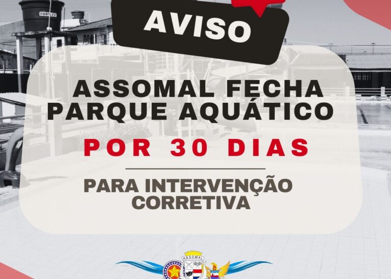 A Diretoria Executiva da ASSOMAL, priorizando a segurança dos frequentadores do Clube, e devido ao início das obras para correção de fissuras, trincas e rachaduras – tanto no deck, quanto nas piscinas, conforme cenário apresentado de afundamentos, deslocamentos diferenciais e movimentações no solo, RESOLVE FECHAR POR 30 DIAS, A CONTAR DESTA SEXTA, 30/05/2025, O PARQUE…