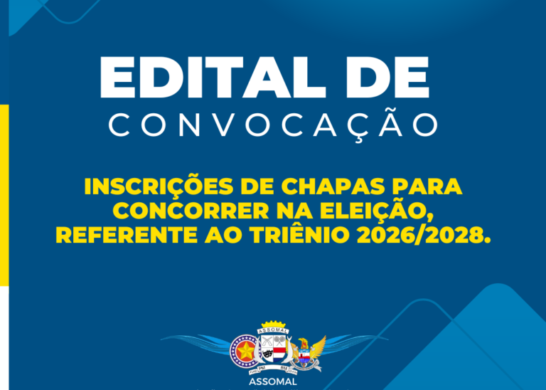 O Edital de Convocação para Eleição da Assomal – Triênio 2026/2028, foi publicado nesta segunda-feira (27) no site da Entidade. O prazo para inscrições de Chapas vai começar nesta terça (28) com término em 26/11/2025. Os requerimentos estão disponíveis na Secretaria da Assomal, de segunda à sexta, de 8h às 16h – exceto aos feriados.…