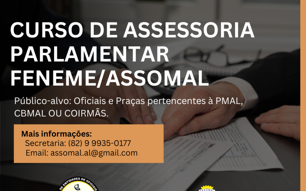 A Associação dos Oficiais Militares de Alagoas – ASSOMAL inicia, nesta quarta-feira (25), as atividades do Curso de Assessoria Parlamentar,…
