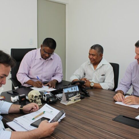Presidente da ASSOMAL, TC J. Cláudio, e secretário Major Paes, participam de reunião com o secretário da Ressocialização TC Marcos Sérgio; instituições deverão consolidar parceria para beneficiar oficiais e reeducandos